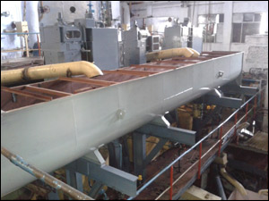 The pugmil is designed and manufactured to suitable 4 no. centrifugal machine capacity 1750kg/charge. Total length of pugmill is 10mtr.